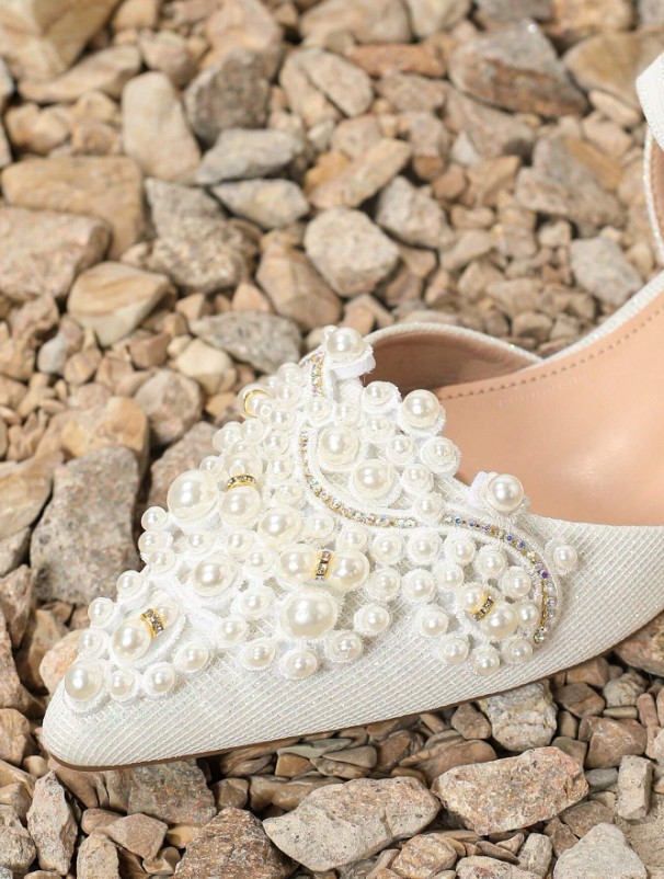 Chaussures plates confortables et mignonnes à bout pointu pour femmes, en fausses perles blanches, motif papillon et fleur, chaussures de printemps, vacances de printemps, chaussures de mariée, mariage
