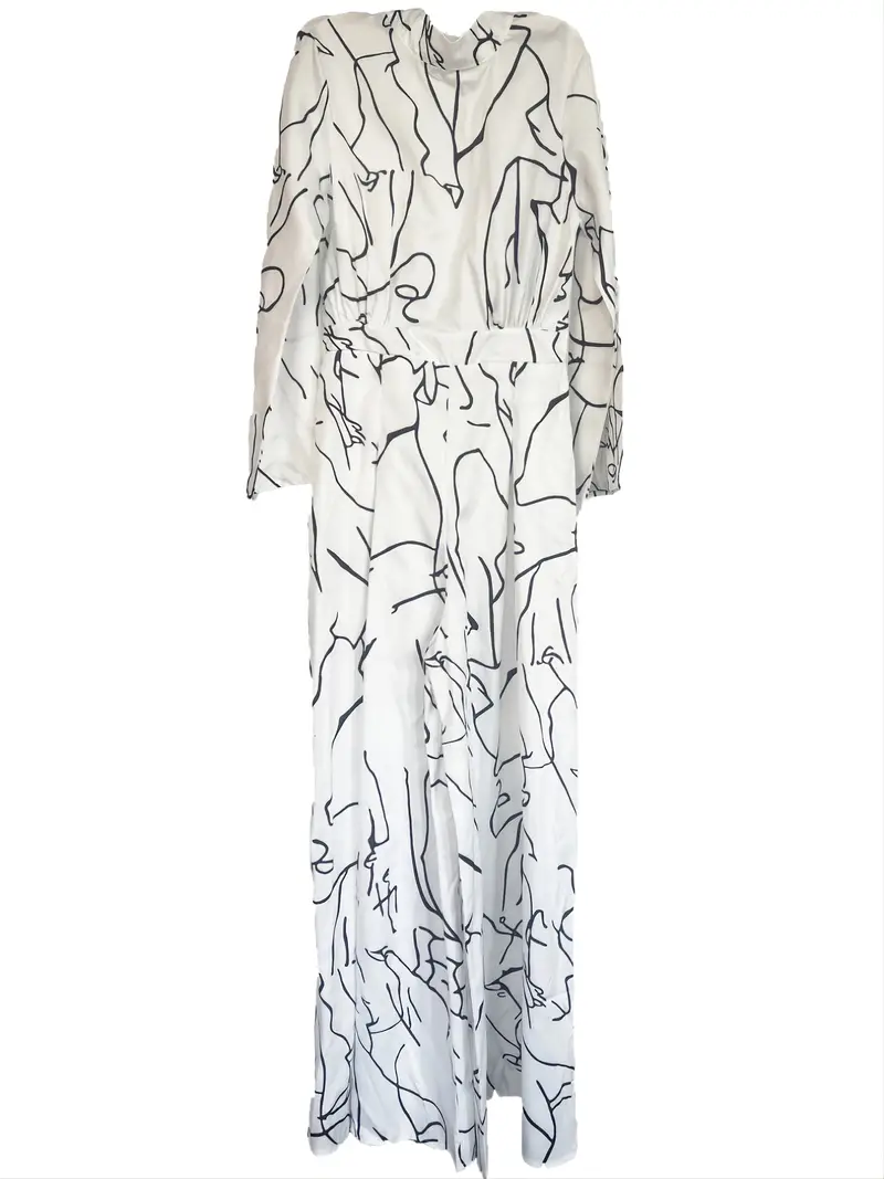 Combinaison décontractée à imprimé floral avec ceinture, combinaison à manches longues avec lien à la taille pour l’été, vêtements pour femmes