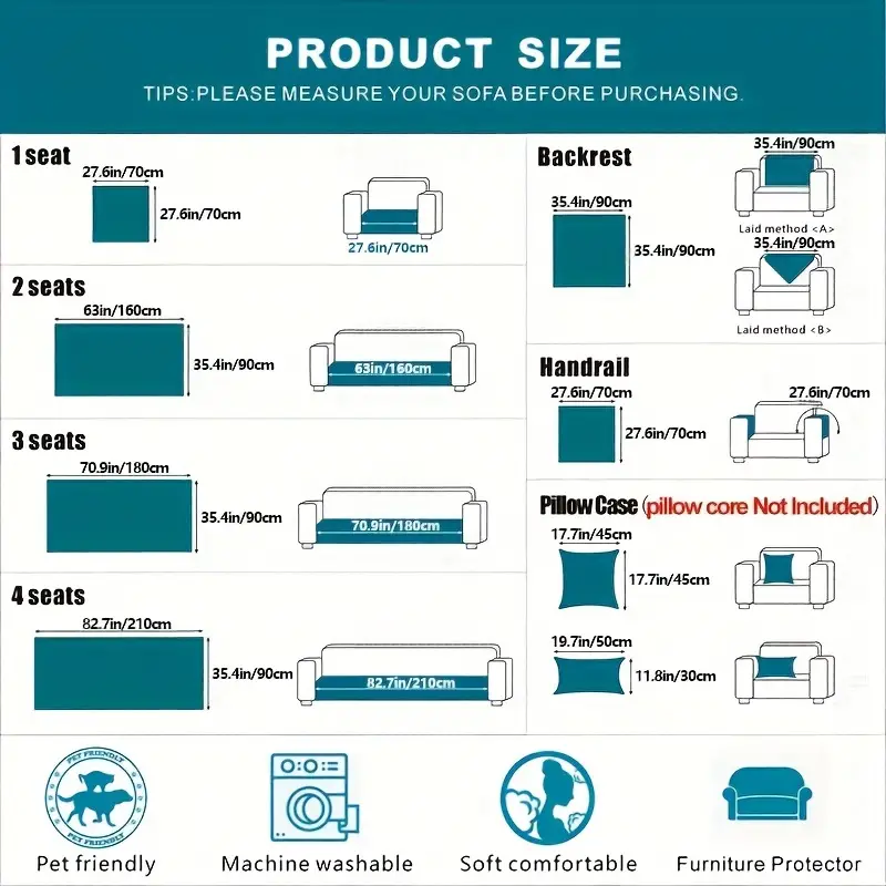 Types de canapés compatibles : fauteuil, causeuse, canapé 3 places, canapé 4 places, canapé sectionnel