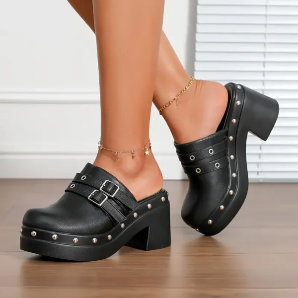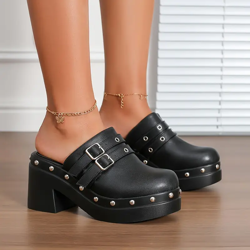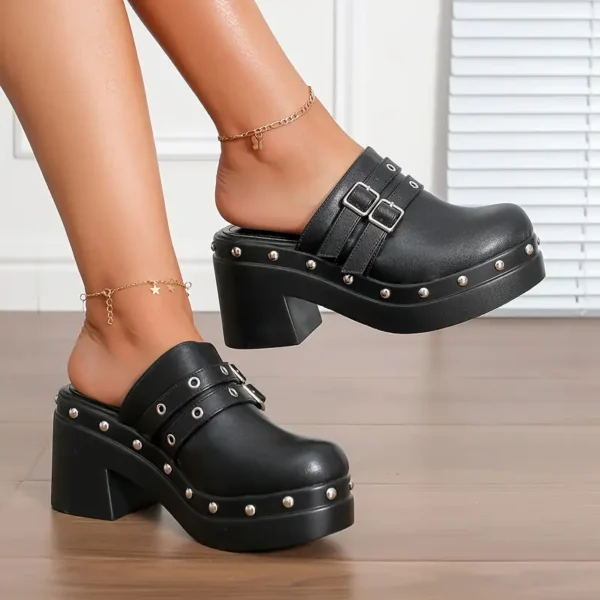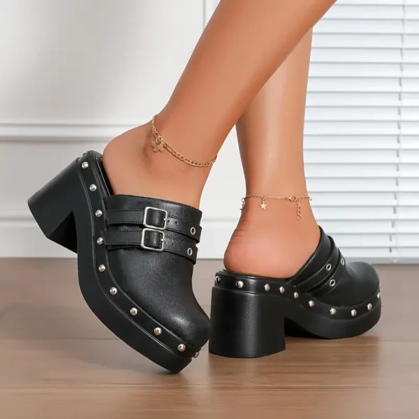 Mules à plateforme chics pour femme – Sandales à enfiler tendance à bout fermé et talon épais, polyvalentes en toutes saisons