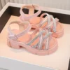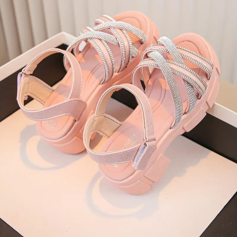 Sandales à talons hauts pour filles, chaussures de princesse à semelle souple avec accents de strass, idéales pour les tenues décontractées