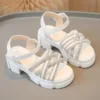 Sandales à talons hauts pour filles, chaussures de princesse à semelle souple avec accents de strass, idéales pour les tenues décontractées, printemps/été