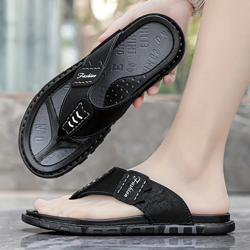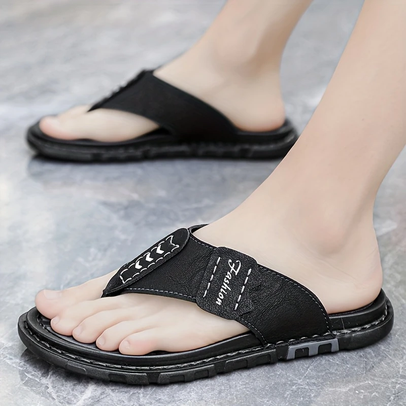 Sandales élégantes noires pour homme – Chaussures d’été confortables pour la plage et les loisirs avec soutien de la voûte plantaire, pour l’intérieur comme pour l’extérieur, semelle en caoutchouc, tige en microfibre, idéales pour les vacances, la randonnée et le quotidien.